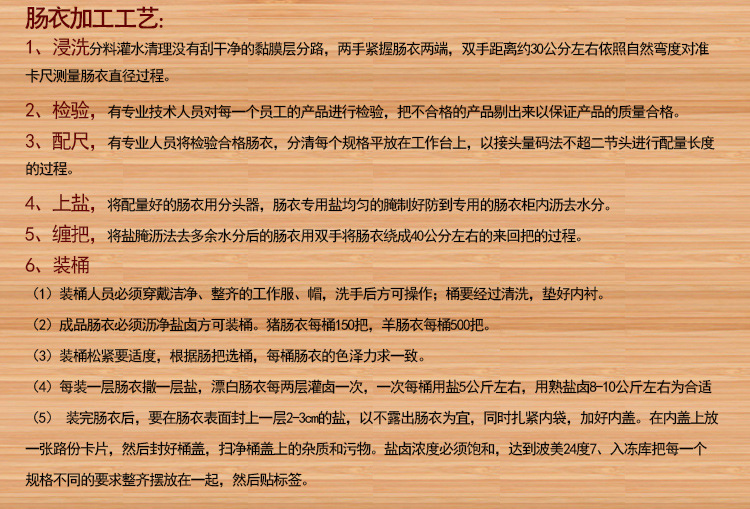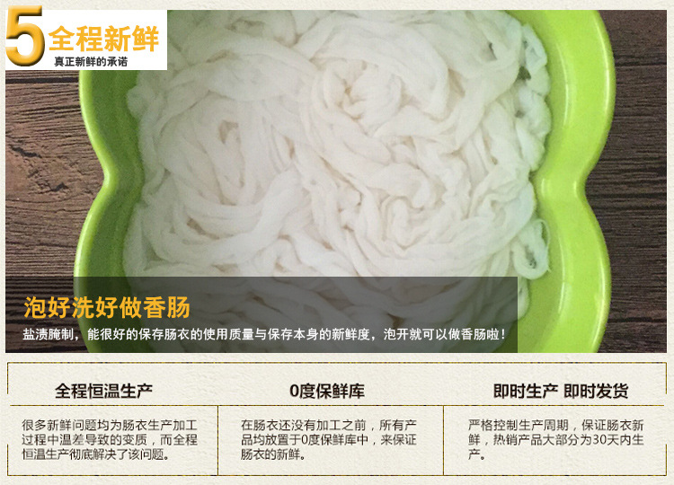 6.關(guān)于腸衣的出廠日期問題::本店是廠家直銷腸衣,將剛出生產(chǎn)線的腸衣直接送到您的手中。