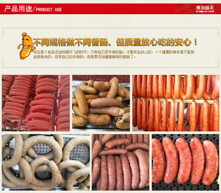 4.適合于各種可食用腸類的使用,如風干腸、臘腸、烤腸、熏腸、蒸煮腸等各種香腸的使用。